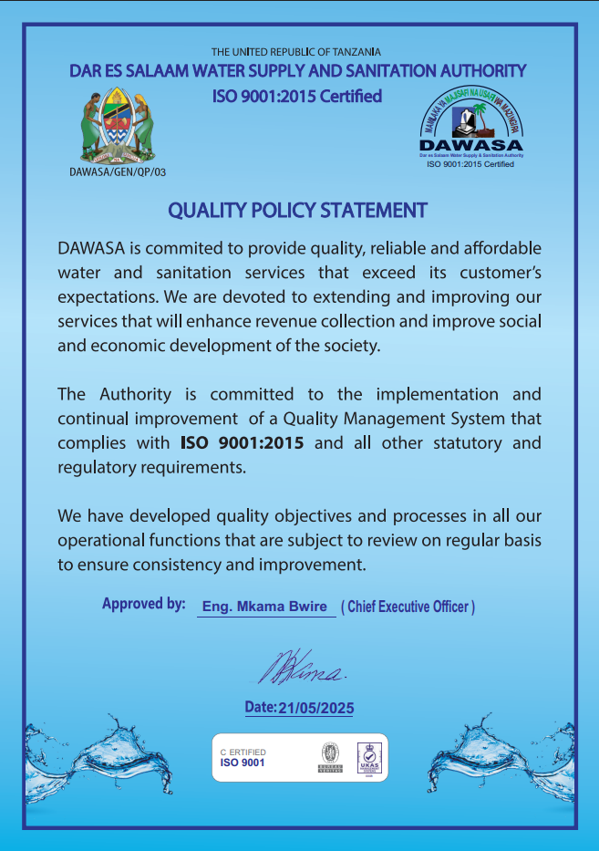 DAWASA Quality Policy